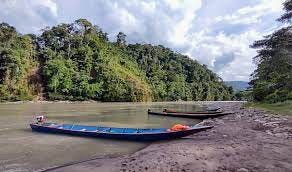 With each yank by Andrés, the canoe quivered on the water, and our luggage (backpacks, devices, clothes, medicine, the lot) contemplated the depths. We also peered into the sedimented drink, wondering about the boa (anaconda) and caribe (piranha). In between the convulsions, the boat careered unconsciously, letting the humour of the river dictate its pirouettes. At any point, we could come upon a sand bank, a tree trunk, a rock. And that would be it. An unscheduled sortie into the brown. Our laptops would be donated to the fishes, and, as for us, our boots would be our rubber rudders.